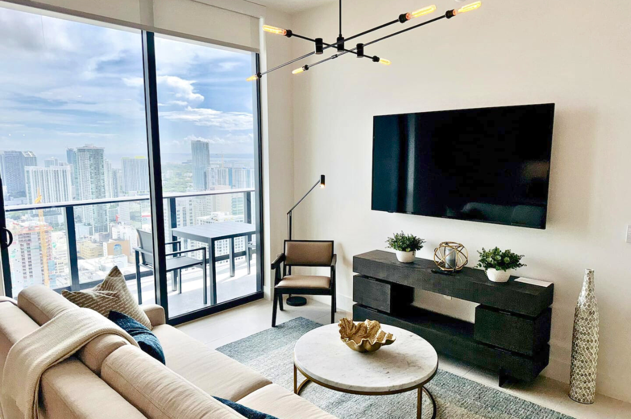 Experience Miami like never before from the sky. This stunning corner penthouse offers 180° views of the city and unforgettable sunsets from wrap-around balconies off both bedrooms and the living room. With stylish interiors, spacious accommodations, and top-tier amenities, this apartment is perfect for families, groups, or anyone looking to enjoy luxury living in Downtown Miami.