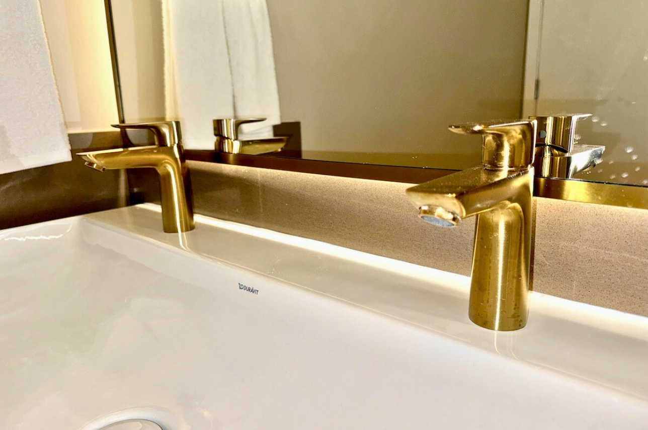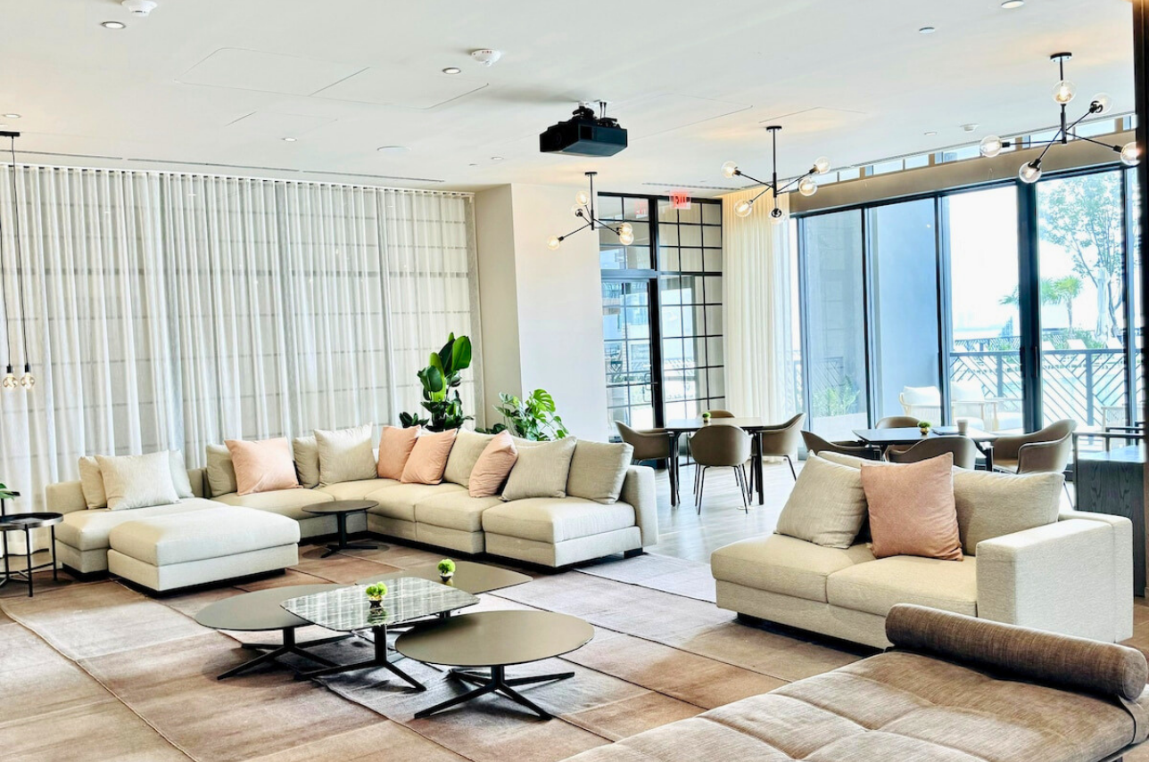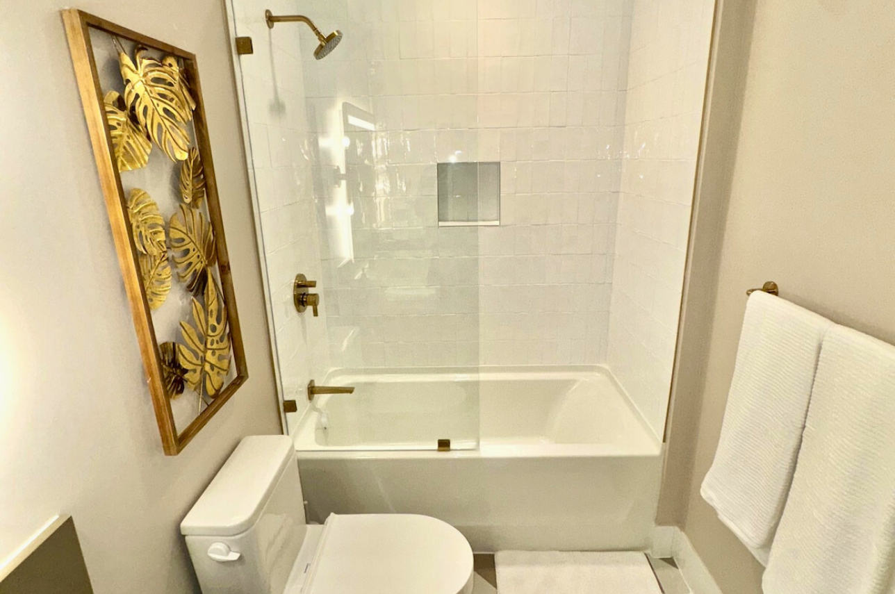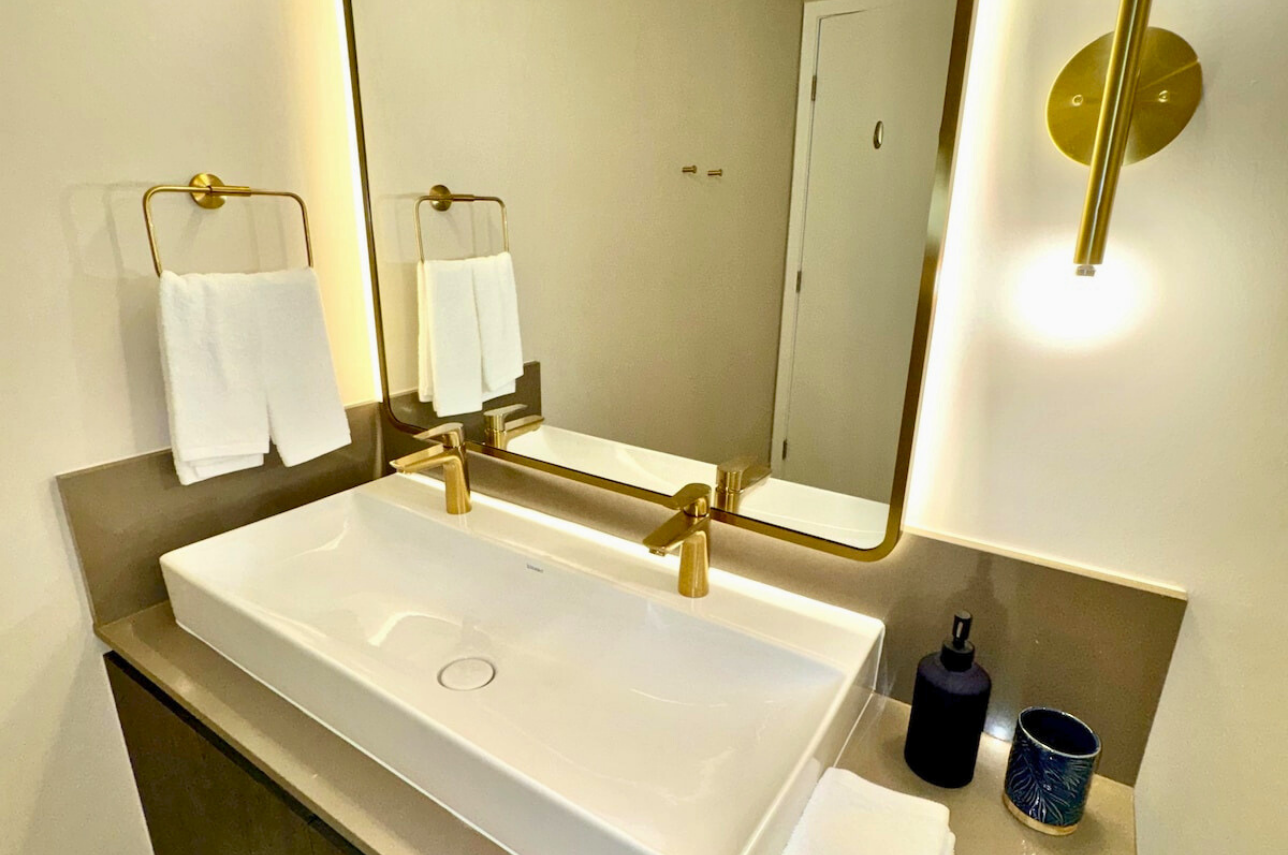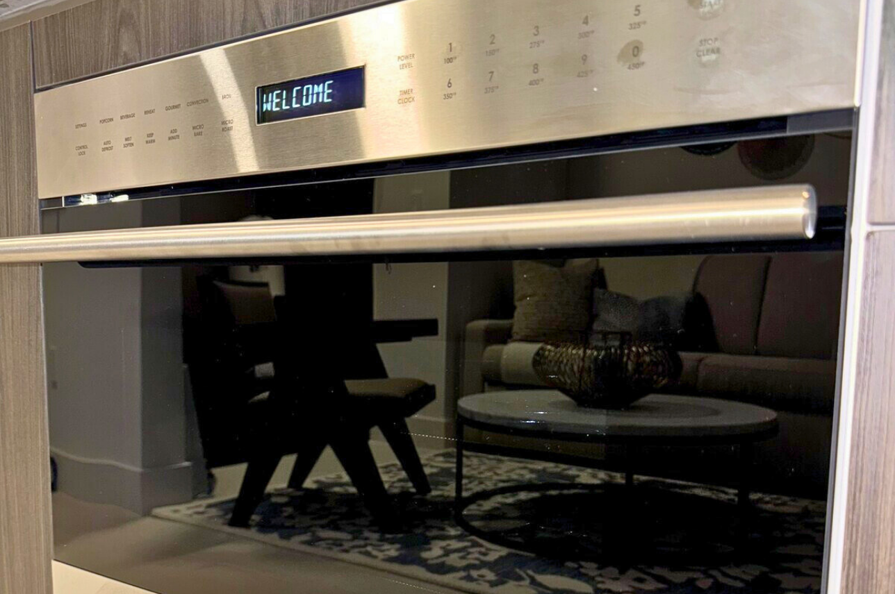 Wake up above the skyline in this high-floor penthouse studio. Enjoy sweeping city and Brickell views from your private balcony, while inside, experience a plush king bed, a 45″ Smart TV, fast Wi-Fi, and a fully equipped luxury kitchen with SMEG appliances. Designed with dark wood, gold accents, and soft neutrals, this studio is perfect for a stylish Miami stay for up to 2 guests.