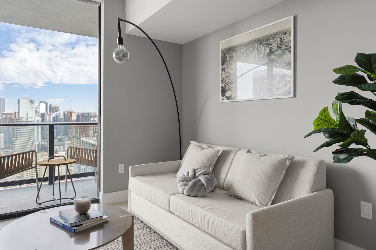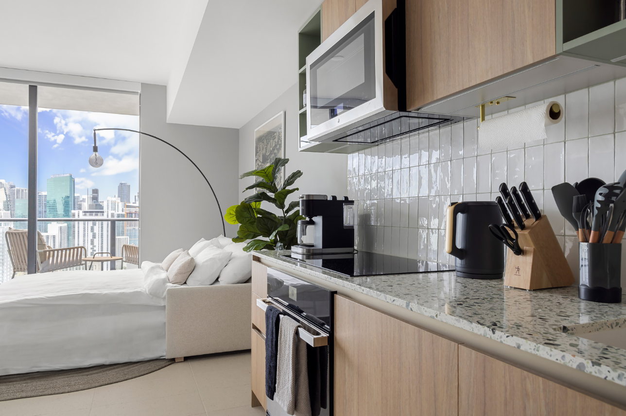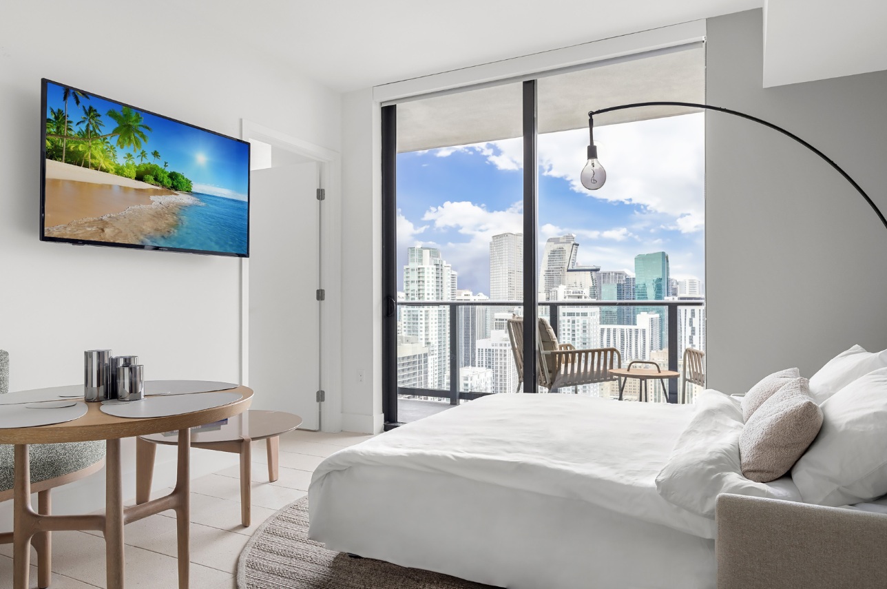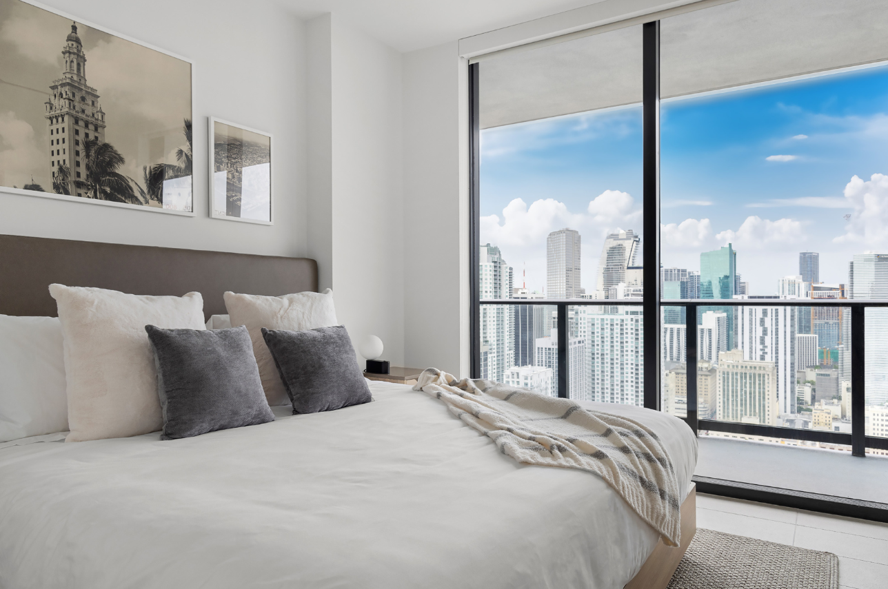 Welcome to Verdant Views, a serene 1-bedroom retreat perched on a high floor in the heart of Downtown Miami. With a calm palette of soft green, gray, and wood accents, this bright and modern unit features a private balcony with south-facing views of the marina, Bayside, and the Downtown skyline. Ideal for couples, business travelers, or small families (up to 4 guests), this space offers both style and functionality for a seamless Miami stay.