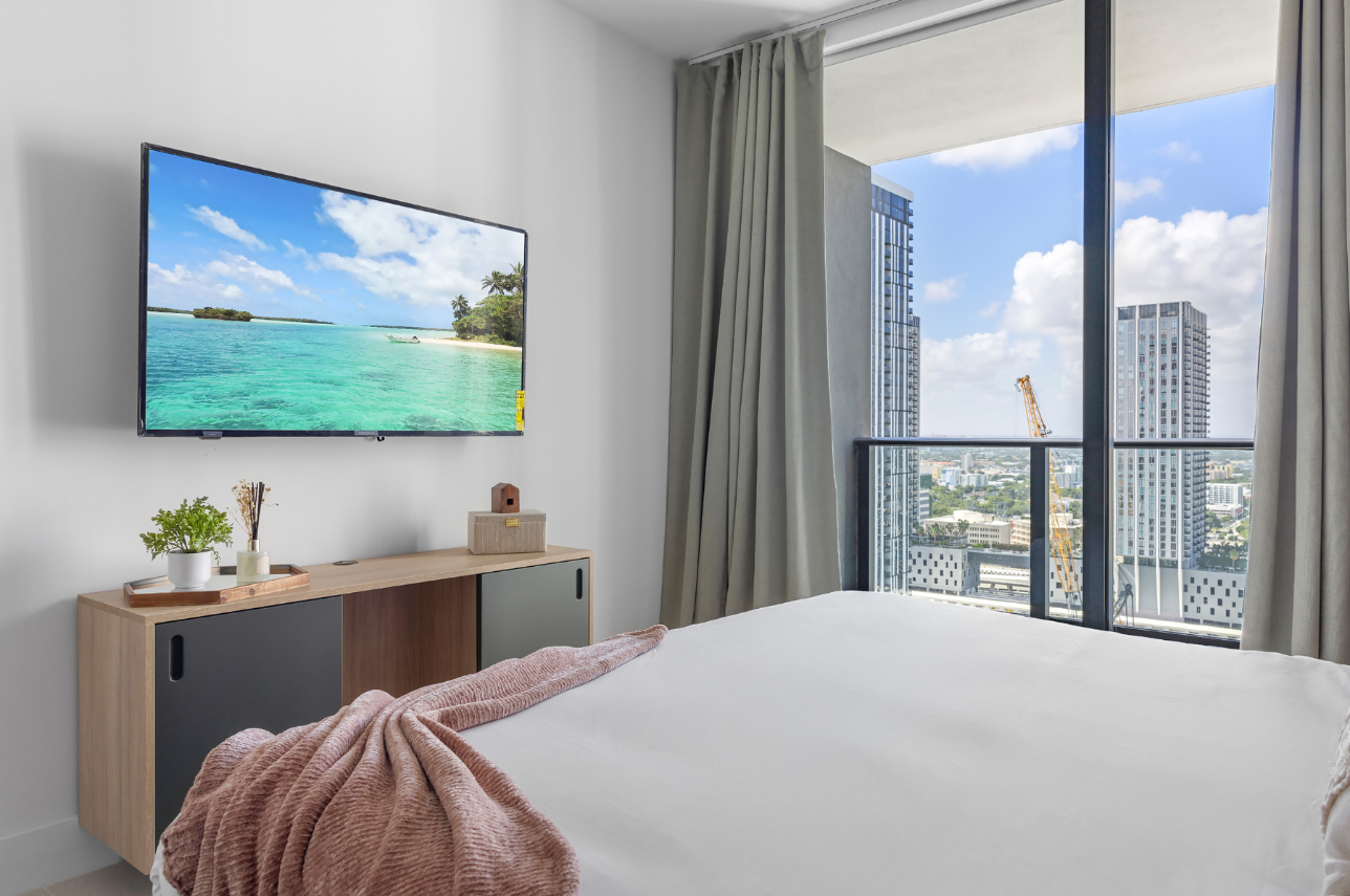 Welcome to Golden Glow Retreat, your dreamy escape in the heart of Downtown Miami. Designed with warm tones, aesthetic finishes, and floor-to-ceiling views, this spacious one-bedroom apartment comes alive each evening with a stunning golden-hour glow. Ideal for couples, small families, or business travelers, this space blends peaceful ambiance with unbeatable access to the city’s energy, just steps from Bayside, the Kaseya Center, and more.