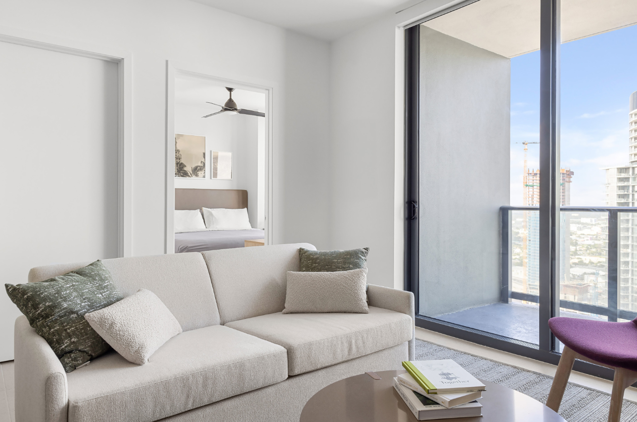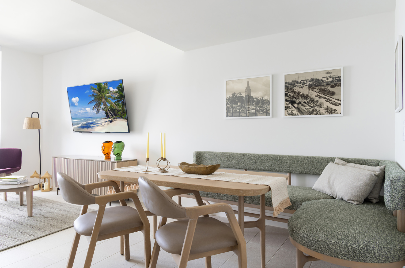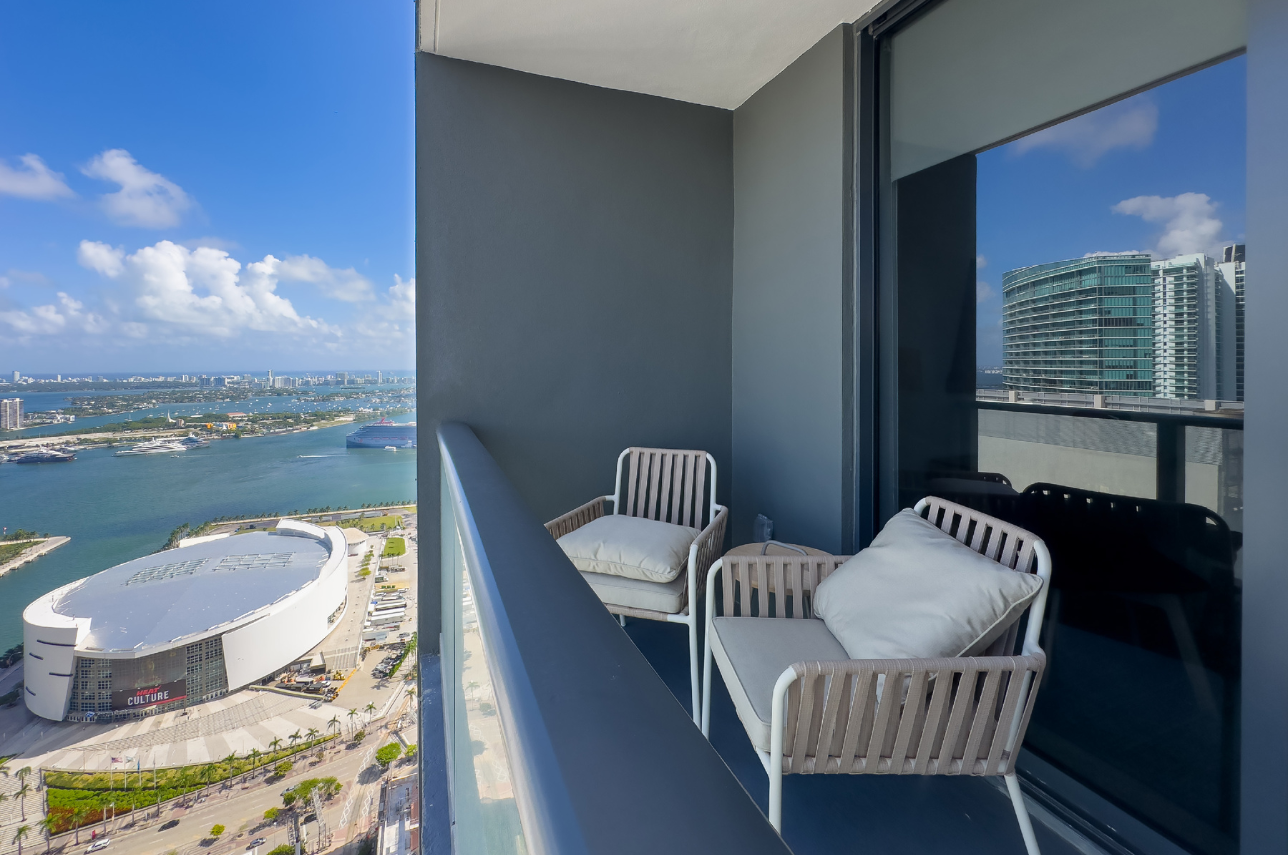 Welcome to Blue Horizon, a high-floor, minimalist 1-bedroom retreat with sweeping views of Downtown Miami, the Kaseya Center, and the Atlantic Ocean. Blending natural wood textures with fresh tones of green, white, and gold, this tranquil haven offers modern comfort, thoughtful design, and access to luxury amenities.